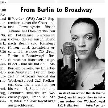 "Da Berlino a Broadway" è il terzo proprio programma presentato di Bisseh Akamé - è anche il titolo del suo nuovo CD.